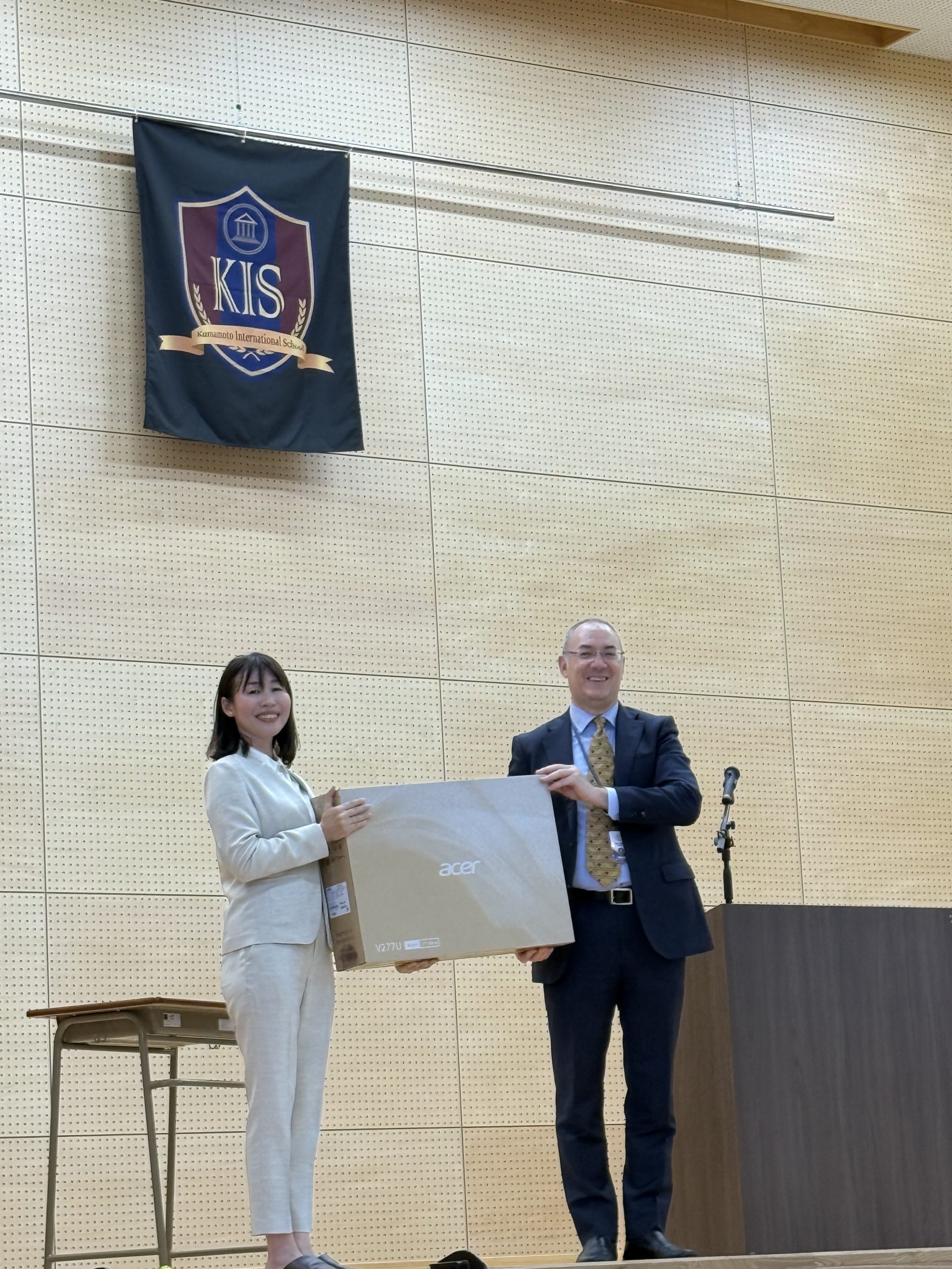 作為回饋在地社會的一環,為充實教育環境並支援數位化學習,本公司向熊本國際學校捐贈了 20 台27吋螢幕。